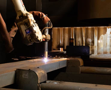 Layout of stairs, railings, and structural members is performed automatically with robotics to which allows our workforce to focus on assembly and welding.